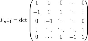 Фибоначчи сандары континуанталар мәндері ретінде бірліктер жиынында өрнектеле алады: , то есть